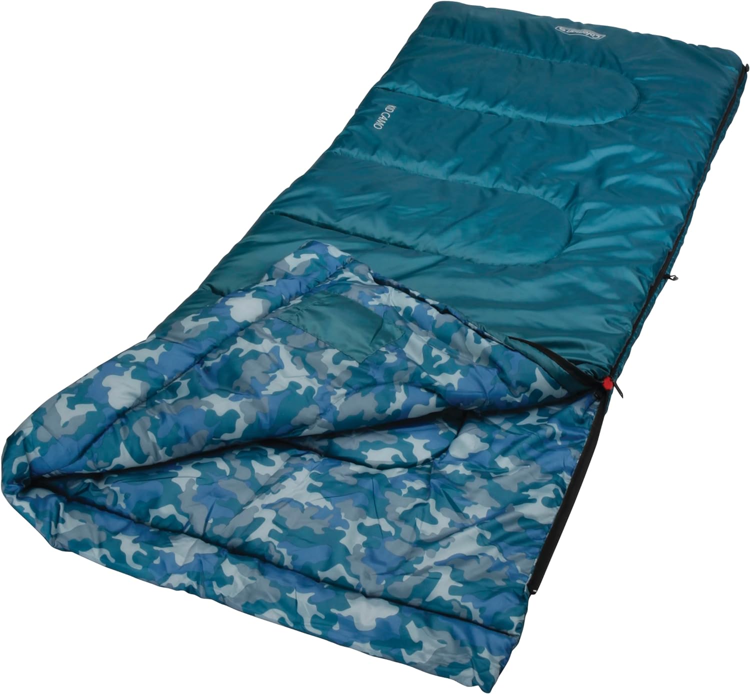 Saco de dormir Coleman Kids de 45 °F, cómodo saco de dormir para jóvenes para fiestas de pijamas y campamentos, apto para niños de hasta 1,65 m de alto, saco de dormir liviano y cálido para uso en interiores y exteriores, lavable a máquina - Azul / Libre de PFA